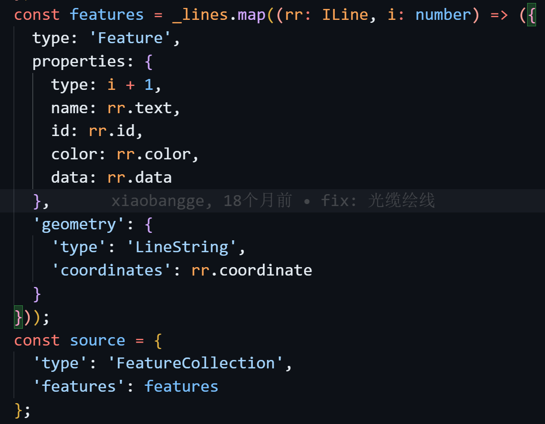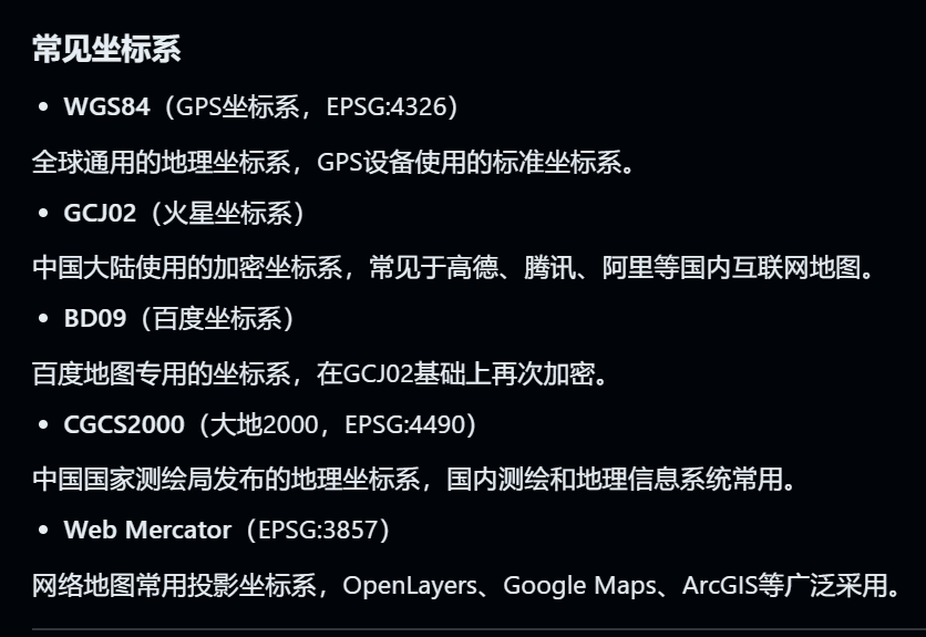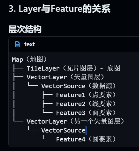 类型包括: Point(点)、LineString(线)、Polygon(面)等