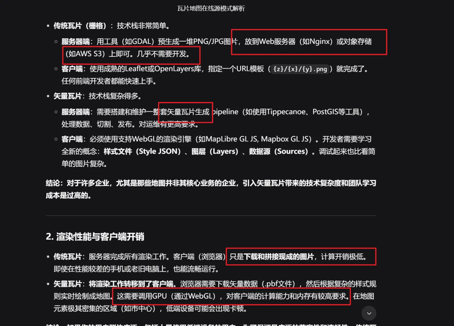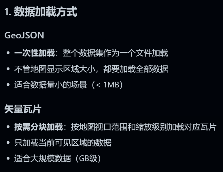 客户端:接收数据后实时渲染为地图可视化,,根据一套预先定义好的样式文件(Style JSON),实时地将这些数据绘制成地图。