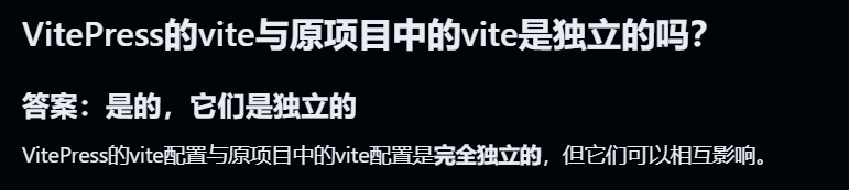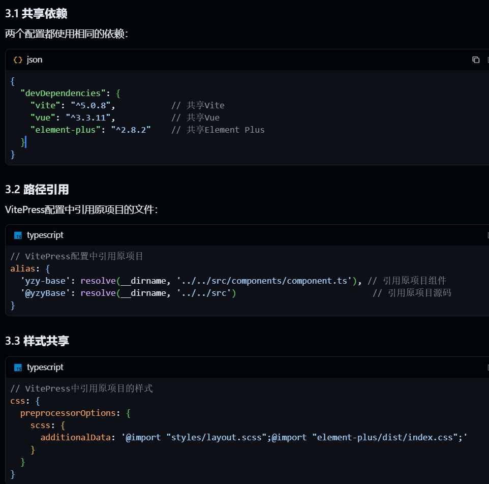 互相影响是因为vitePress就寄生在原项目根目录下,可以通过路径引用原项目里的内容: