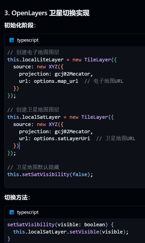 通过监听prop.mapParams.online,销毁地图容器(amap封装了destroy,openlayer需要手动移除各个图层控件并抹除DOM元素),并重新生成地图容器,并重新绘画点线以还原切换前的状态