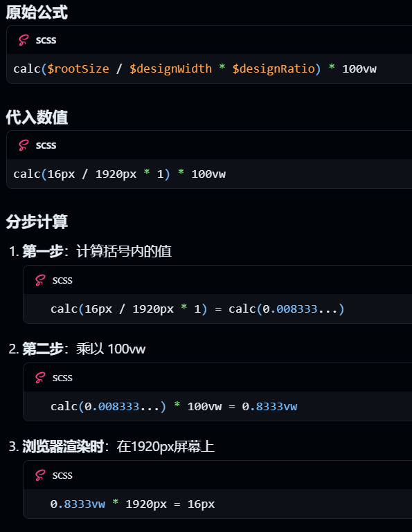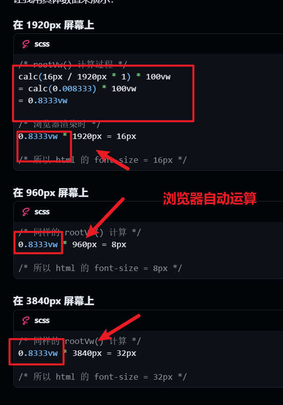 有了根字体大小后我们就可以开始计算动态字体大小,也就是rem函数