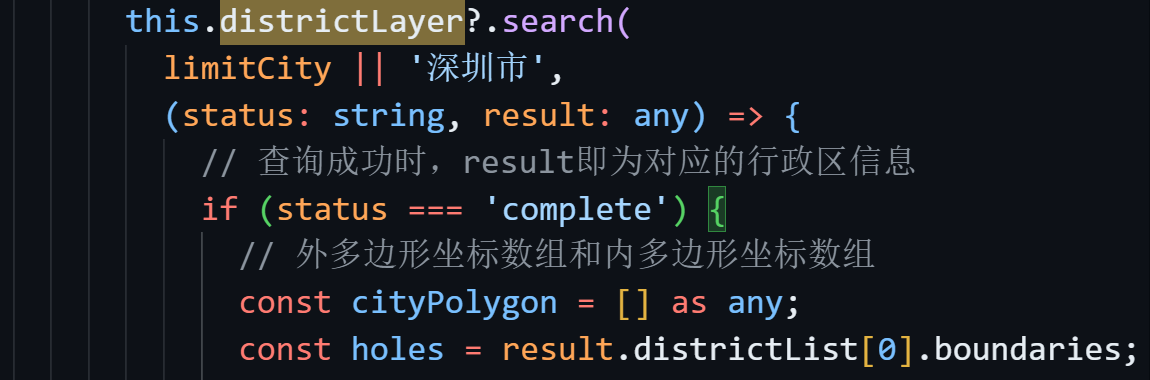 步骤二:用行政区域服务搜搜行政区的信息,获取边界坐标数组