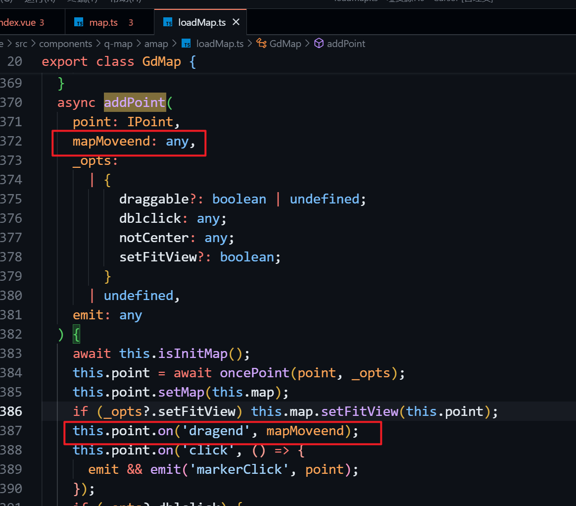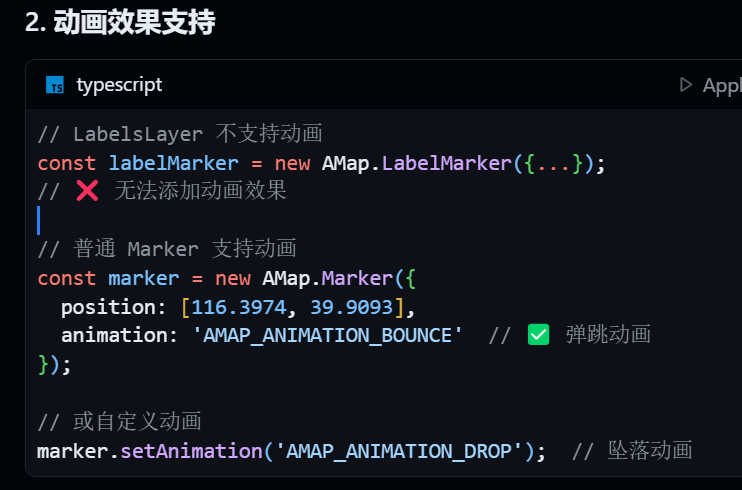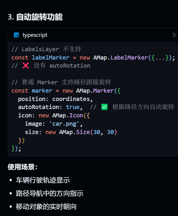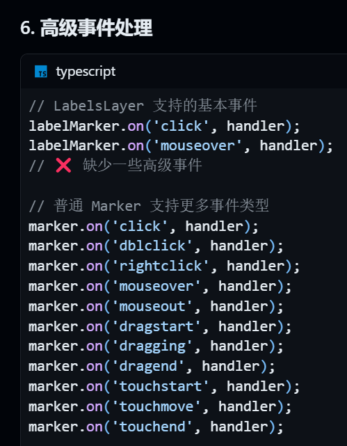 高德直接创建 AMap.Marker 对象,通过marker.setMap(this.map)直接添加到地图实例。高德的事件可以直接绑定到点对象上。