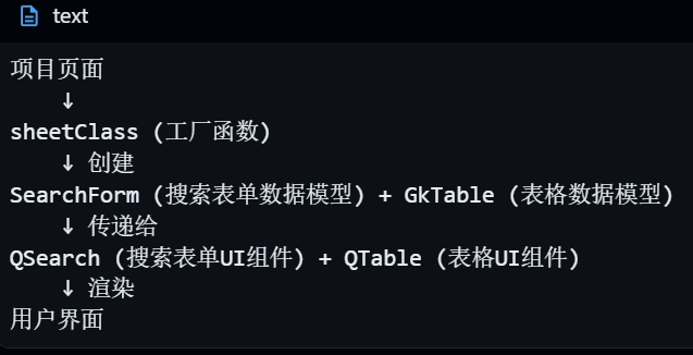 把整合管理的响应式状态抛给Qsearch和Qtable。在工厂函数内处理带搜索条件和分页的接口查询。并返回响应式的tableInfo和searchForms给到外面视图同步。提供查询、重置等方法给到外部逻辑调用,允许外部传入表格配置、搜索配置、搜索配置、替换数据(如强行覆盖查询条件、额外的查询条件)