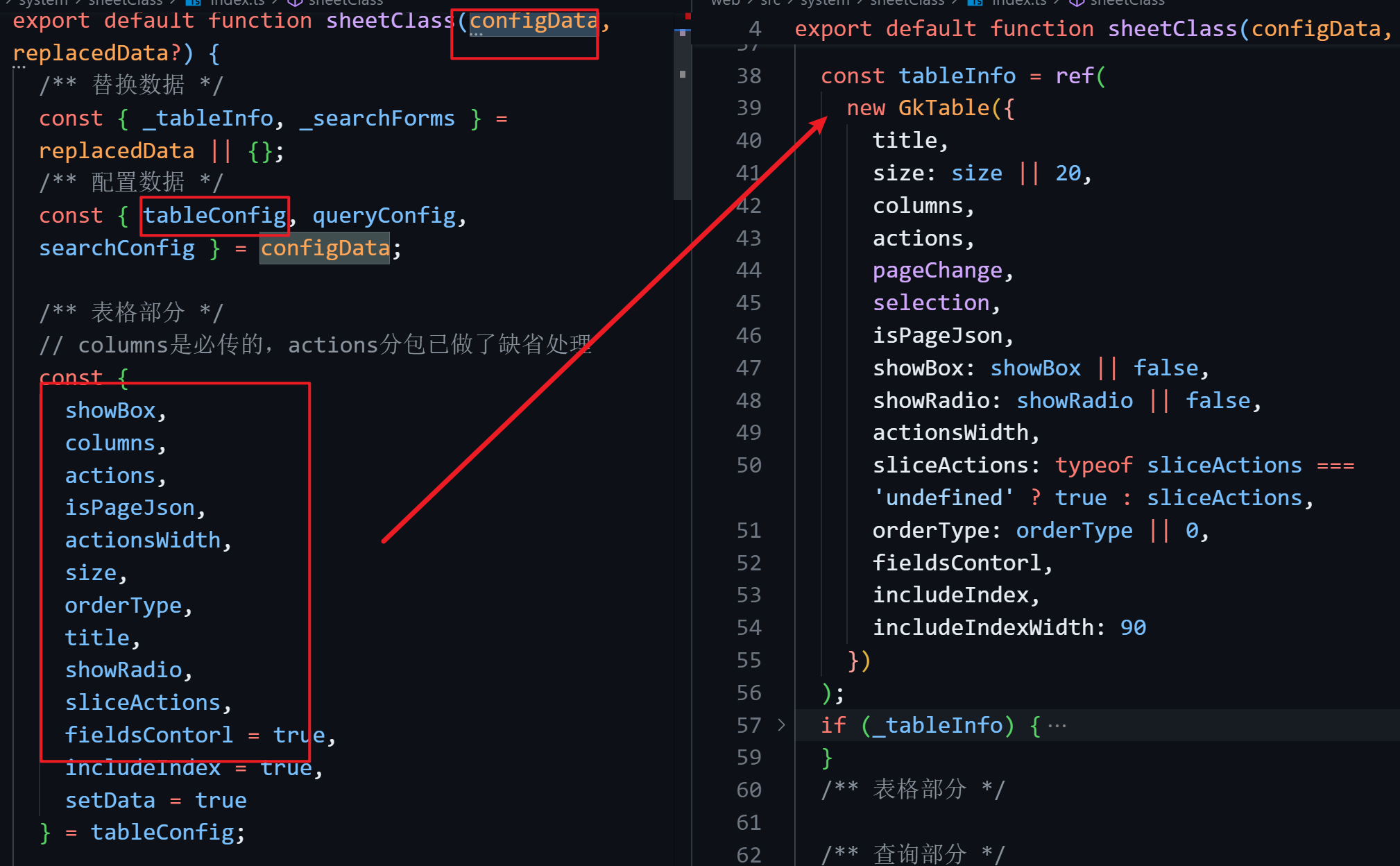 sheetClass 工厂函数。负责整合:表格数据源 + 搜索数据源。