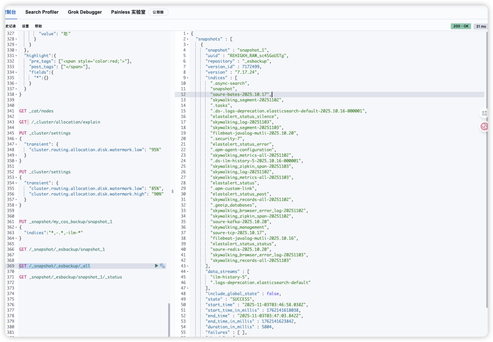 root@ubuntu2204test99:~/elkf# curl -XGET 'http://192.168.1.99:9201/_snapshot/_esbackup/snapshot_1/_status' -H 'Content-Type:application/json' -u 'elastic:123456'