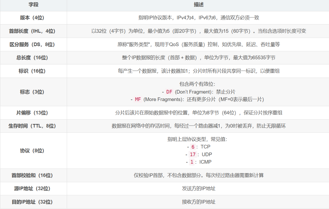 内容:包含完整的IP头部(通常是20字节)和来自传输层(如TCP/UDP)的数据。