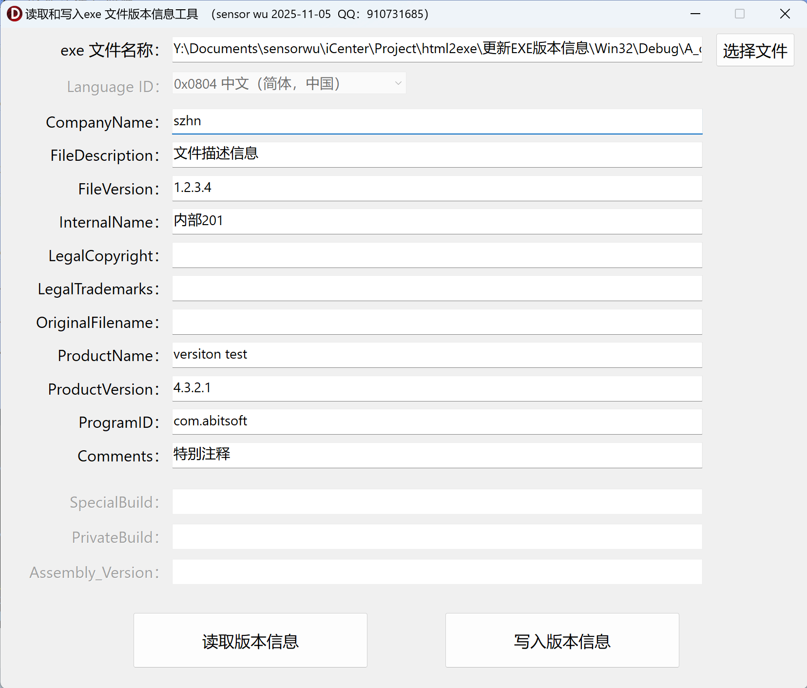 //读取exe文件的版本信息 2025-11-05 测试 OK