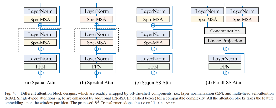 - S2-attn Transformer阶段:核心部分,通过多个注意力块处理空间和光谱信息