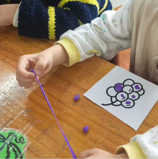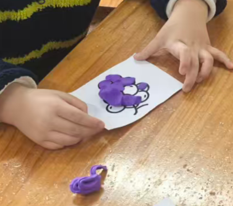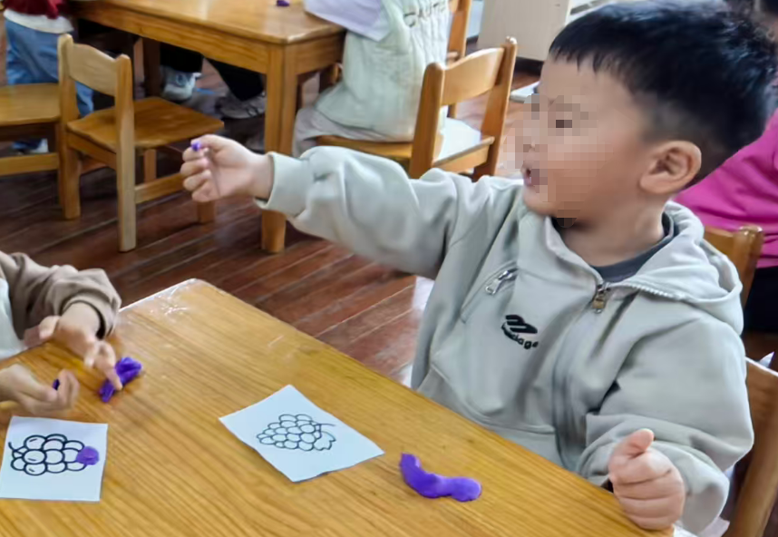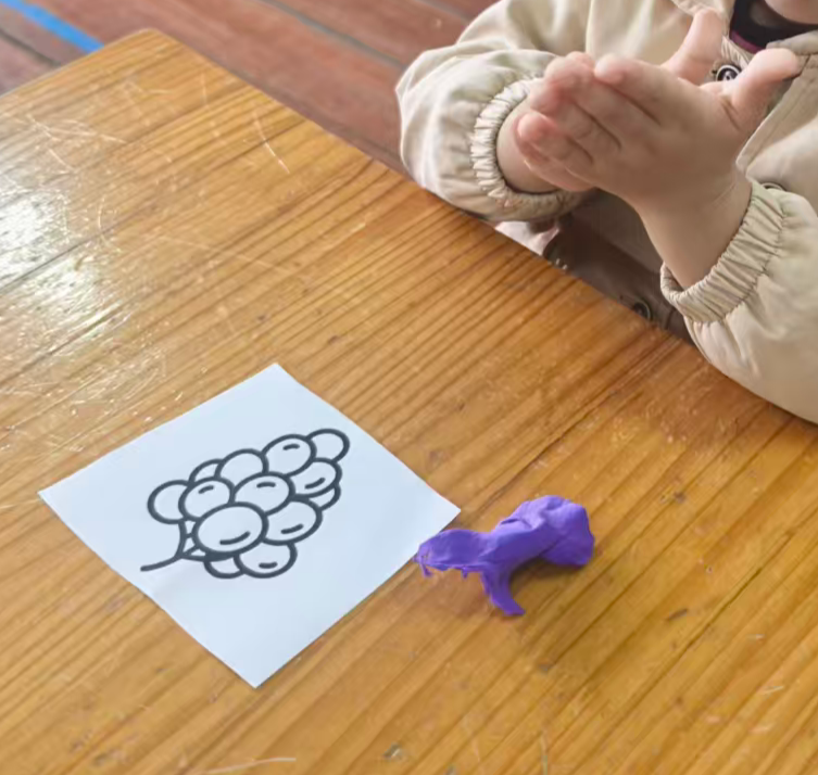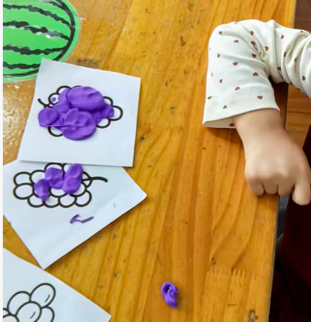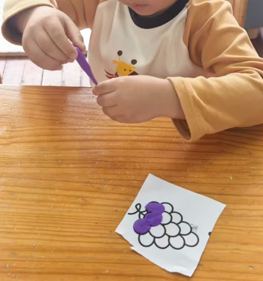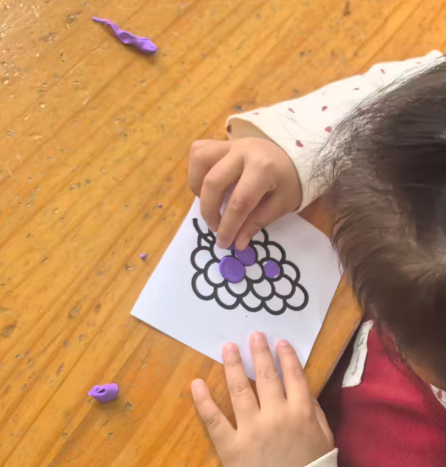 幼儿想把彩泥剥下来,直接把葡萄黑线卷走