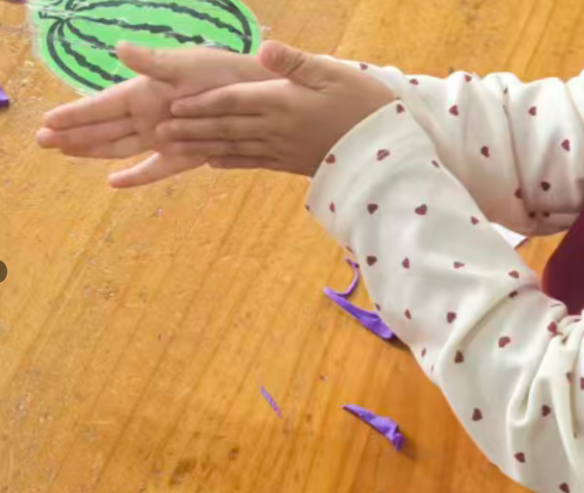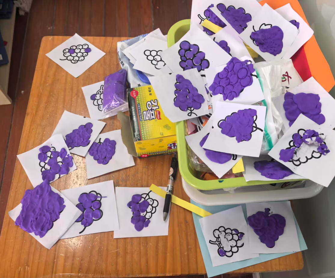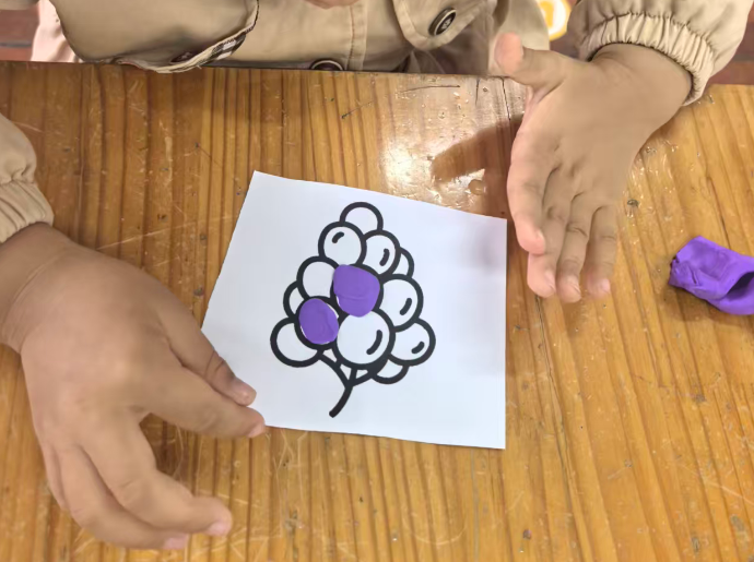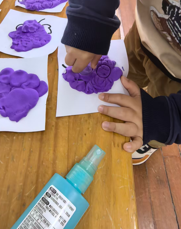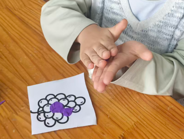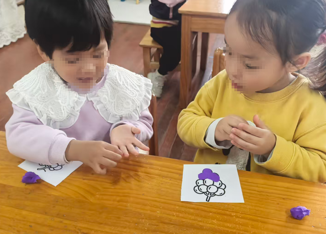 幼儿想把彩泥剥下来,直接把葡萄黑线卷走