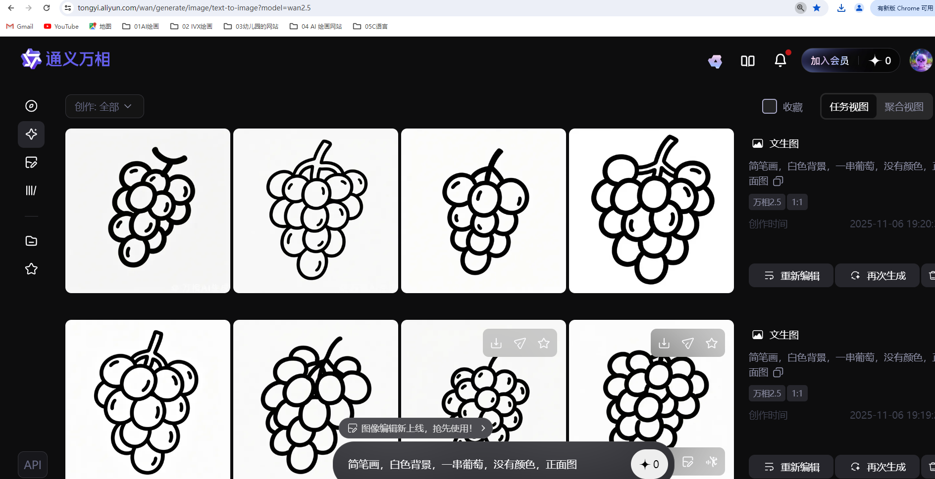 谷歌页面打开通义万相,页面放大到200%