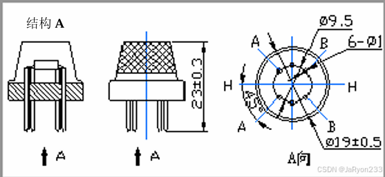 本次,我们学习的传感器是一款MQ-2烟雾气体传感器,顾名思义就是用于检测气体的传感器,也是与前面介绍的有些许类似,如下图所示。