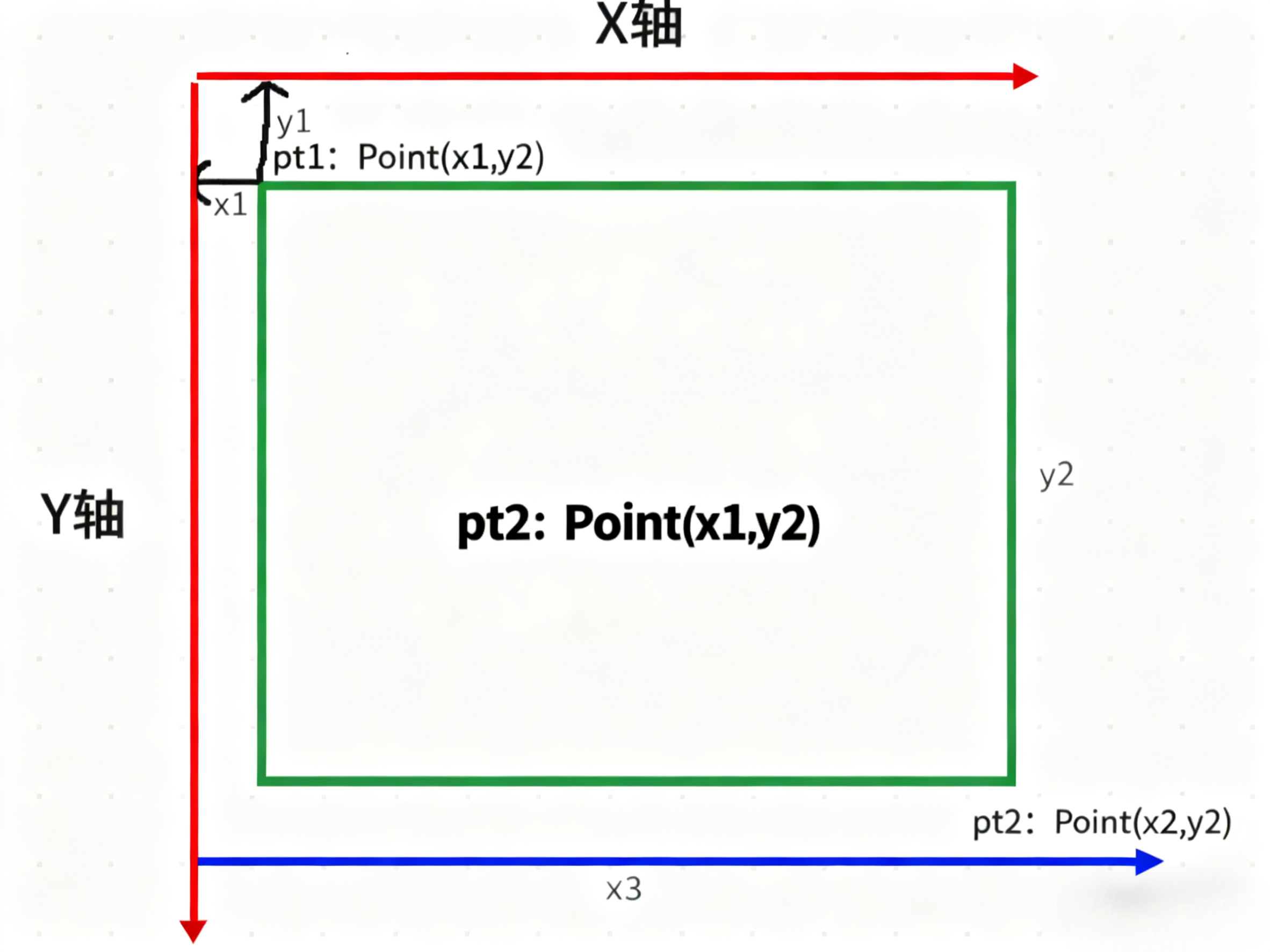 ****第三个参数:****pt2矩形中与pt1相对的顶点,也就是两个点在对角线上,也就是右下角的顶点
