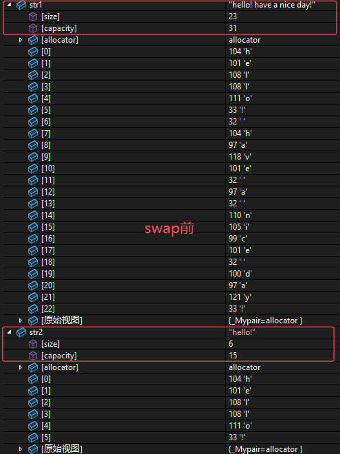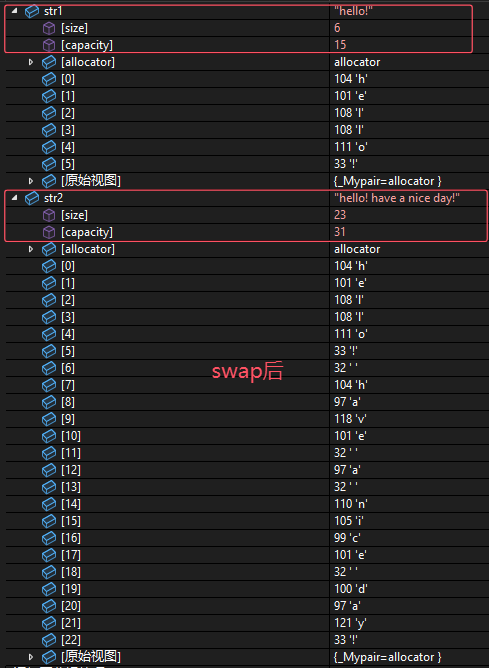 swap交换时,会将两个对象的所有成员包括指针指向都进行交换;