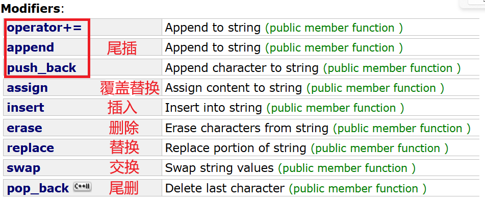 append尾插时可以调整子字符串插入的子字符串的起始位置及插入长度(不指定子字符串的插入长度时参数缺省为npos(c++14));push_back只能插入一个字符;