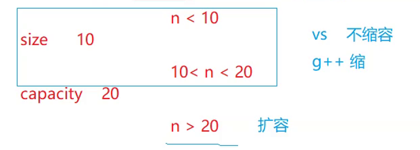 g++4.8:除n比size()小的情况会将capacity()缩小到size()大小外,按照n值进行缩扩容
