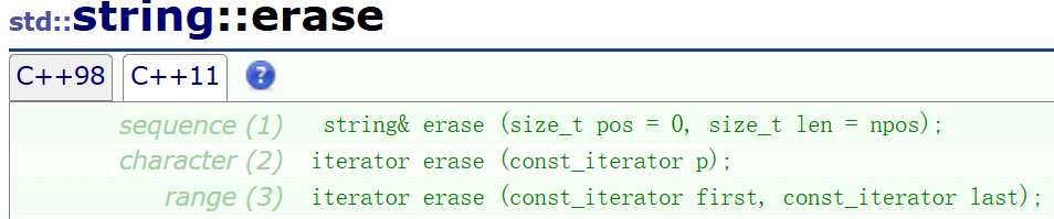 erase删除时,指定删除的起始位置和删除长度,删除长度缺省npos;