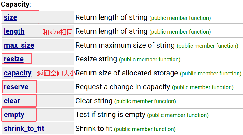 capacity:返回容量大小,不包含"\0",即表示有效空间大小