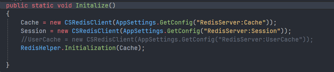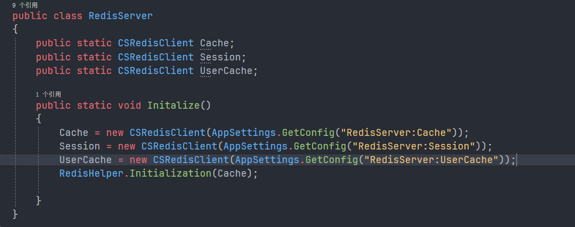 在AppSetting中开启redis服务,在program.cs中会看到RedisServer.Initalize();但是此时并不能用,因为这个Initalize方法只是获取了cache和session,我们要加 RedisHelper.Initialization(Cache);实现真正的初始化实例。此时可以使用redis进行set get操作。但是还没有实现我们最终的目标。下一步就是做第二个实例。