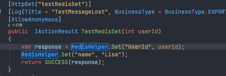 下面解释为什么可以直接在Controller里使用RedisHelper.Set("UserId", userId);