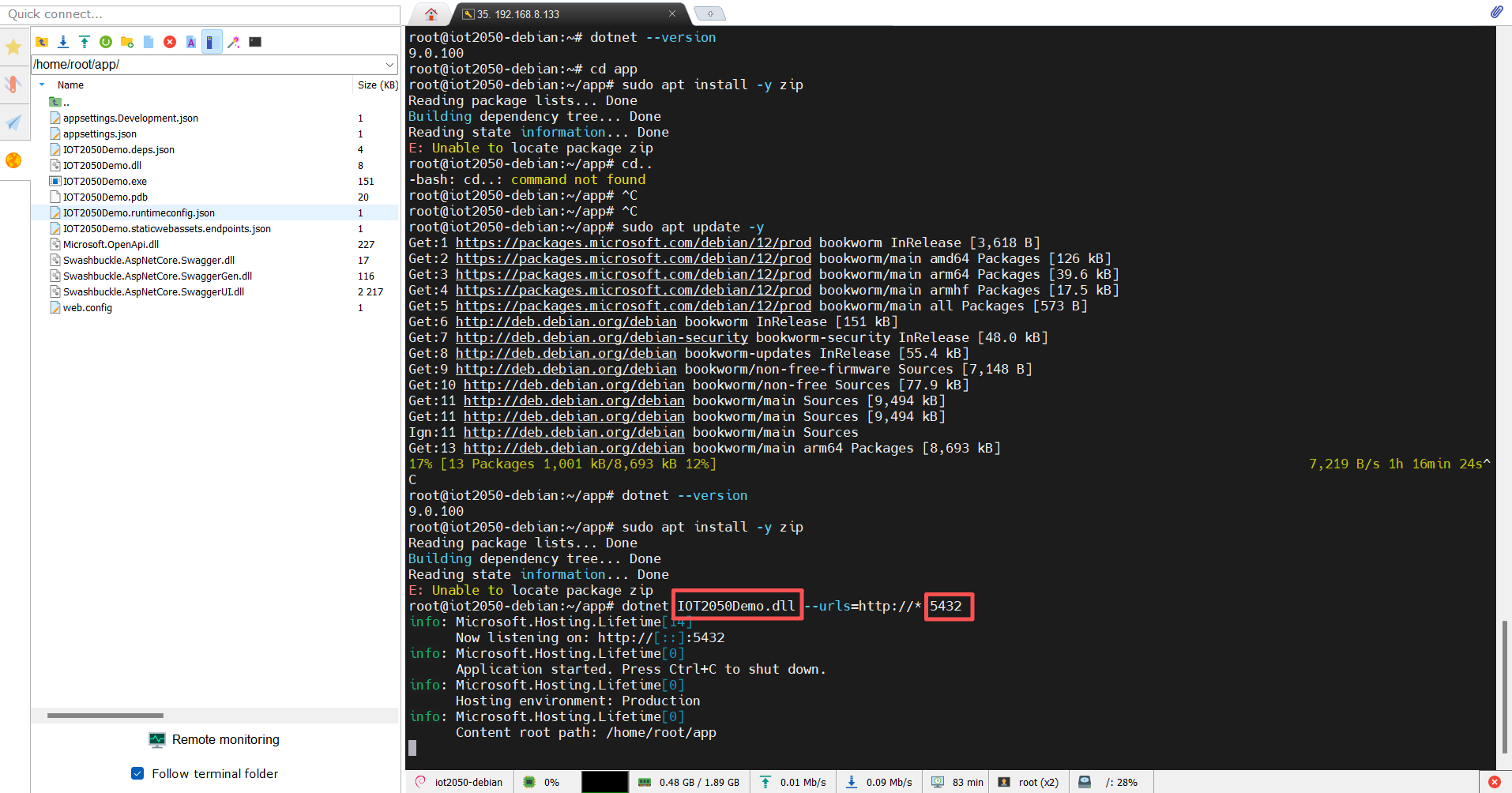 通过SSH登录IOT2050,进入应用目录并启动服务(端口可自定义,需确保端口未被占用;替换"YourProject.dll"为实际项目编译后的DLL文件名): # 进入应用目录 ``cd /var/www/publish ``# 启动应用(以5000端口为例) ``dotnet YourProject.dll --urls "http://*:5000"