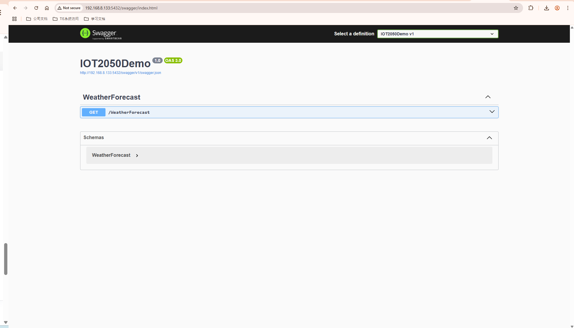 在浏览器或Postman中输入`http://IOT设备IP:5000/WeatherForecast\`(以默认接口为例),若返回JSON格式的天气数据,则说明应用部署成功并正常运行。