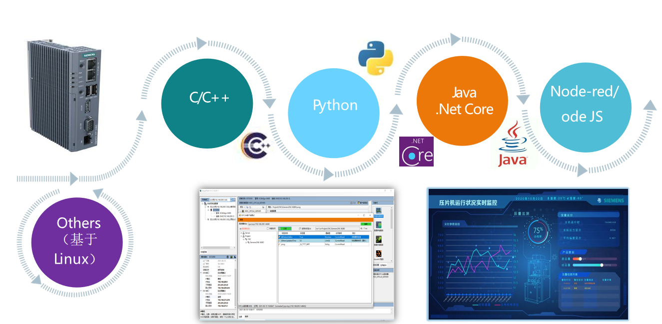 可以使用任何语言(支持linux)进行应用开发,并部署到在IOT上,尤其工业现场类似数据采集、边缘计算控制等。