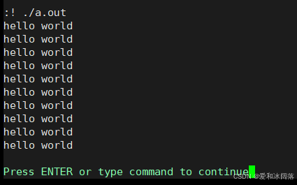 1.在命令模式下进入底行模式,可以通过 ! + 命令 进行不退出vim的情况下来直接执行命令