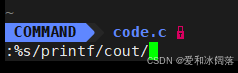 还可以通过% ///,将目标元素进行替换,如将printf替换为cout:%s/printf/cout/