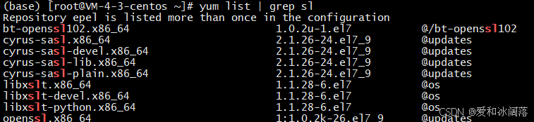 通过 yum list 命令可以罗列出当前⼀共有哪些软件包,由于包的数⽬可能⾮常之多,这⾥我们需要使⽤ grep命令只筛选出我们关注的包