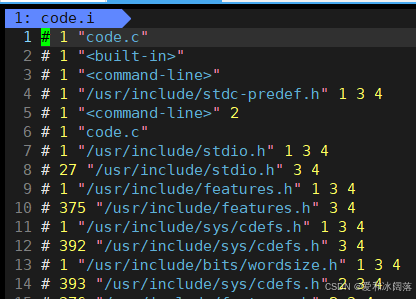将预处理结果写到code.i文件中,E的意思就是从现在开始进行程序翻译,在预处理做完的时候就停下来,注意在预处理完的code.i依旧是C语言