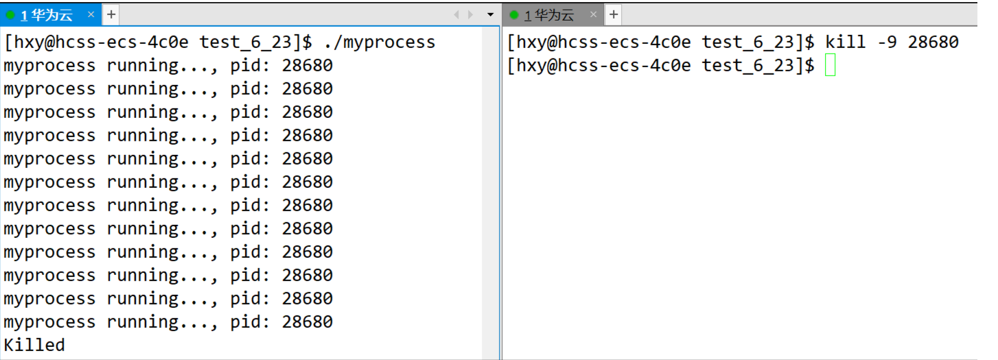 我们以信号的方式来终止进程,我们通过一下代码进行测试: