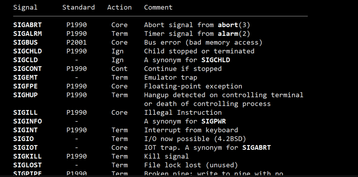 我们可以通过man手册来查询不同信号的含义man 7 signal: