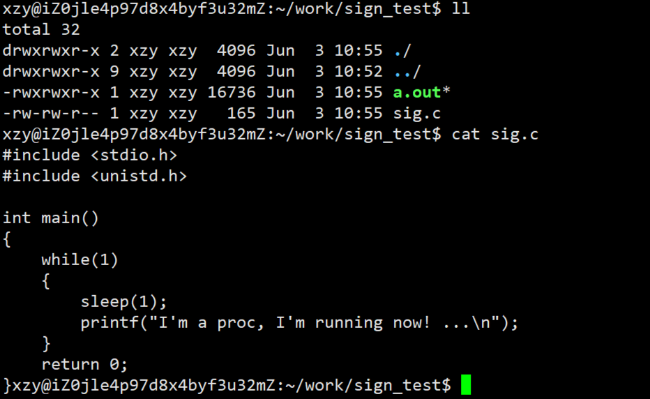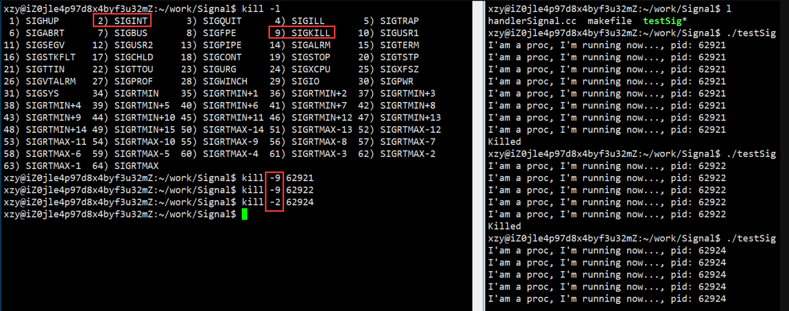 cpp#include <iostream> #include <unistd.h> #include <sys/types.h> int main() { while(true) { std::cout << "I'am a proc, I'm running now..., pid: " << getpid() << std::endl; sleep(1); } return 0; }我们使用9号信号 和2号信号杀死了进程,这种发命令做出对应行为的方式 就是进程执行了信号的默认动作。就像我们潜意识知道在十字路口红灯停、绿灯行一样。