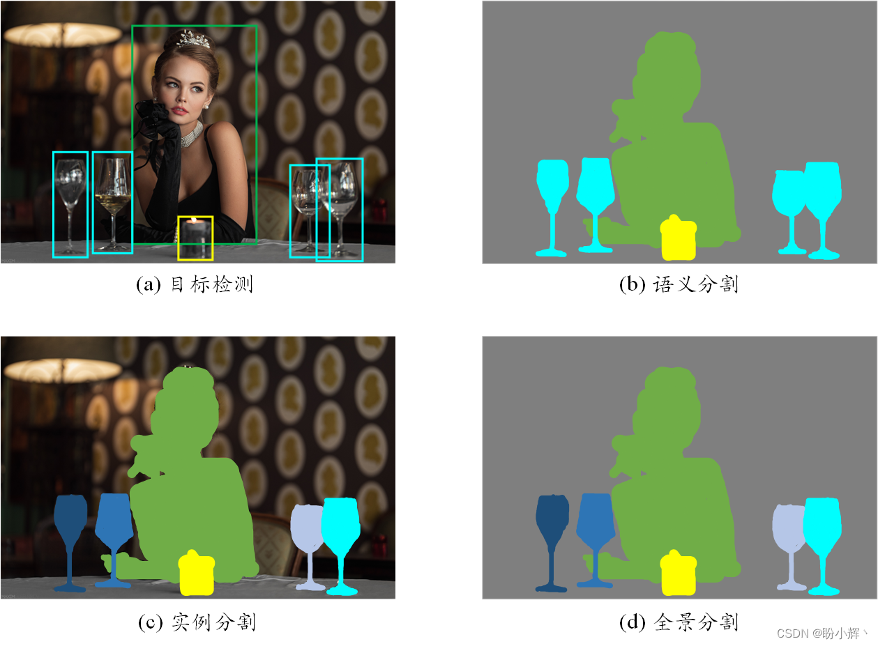 全景分割 (Panorama Segmentation) 可以看作是语义分割和实例分割的结合,需要同时对图像中所有物体和背景进行检测和分割。其中,对背景区域的分割属于语义分割,而对物体的分割属于实例分割。