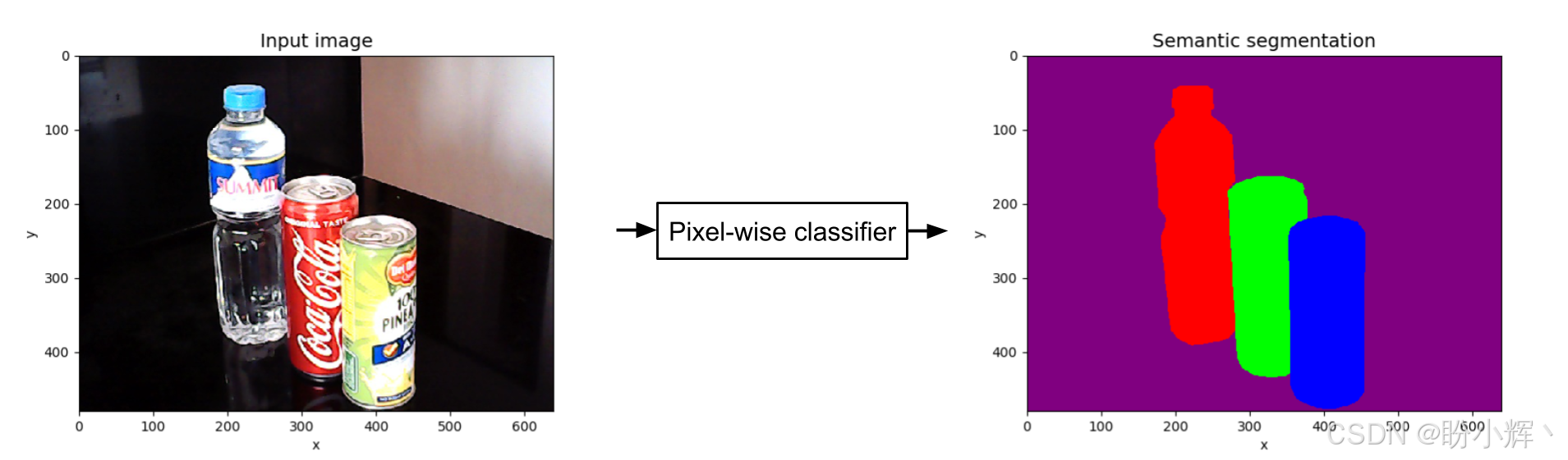 目标检测的目的是对图像中的每个对象同时进行定位和识别,而在语义分割中,目的是根据每个像素的对象类别对它们进行分类。在目标检测中,我们使用边界框来展示结果;而在语义分割中,同一物体的所有像素均属于相同类别。从视觉上看,同一物体的所有像素将呈现相同颜色,例如属于汽水罐类别的所有像素都会显示为蓝色,非汽水罐物体的像素则呈现不同颜色。语义分割具有诸多实际应用场景,在医学影像领域,它可用于分离并测量正常细胞与异常细胞区域;在卫星影像分析中,可用于测算森林覆盖率或灾害期间的洪水蔓延范围。总体而言,语义分割能用于识别属于同类物体的像素,而无需区分单个物体实例。