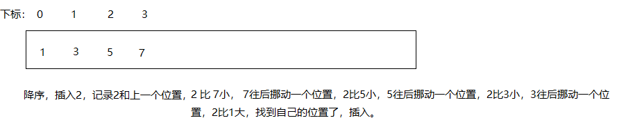 顾名思义,就是在插入的过程中来排序,当插入第i个元素时,前面的i - 1个已经排好序,此时用arr[i]来跟前面的做比较,找到合适位置插入,之前位置上的元素后移。