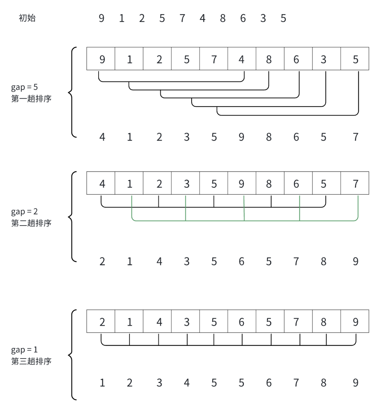 2.gap > 1都是预排序,让数组接近有序,gap == 1才是真正的排序,这样整体到达优化的效果