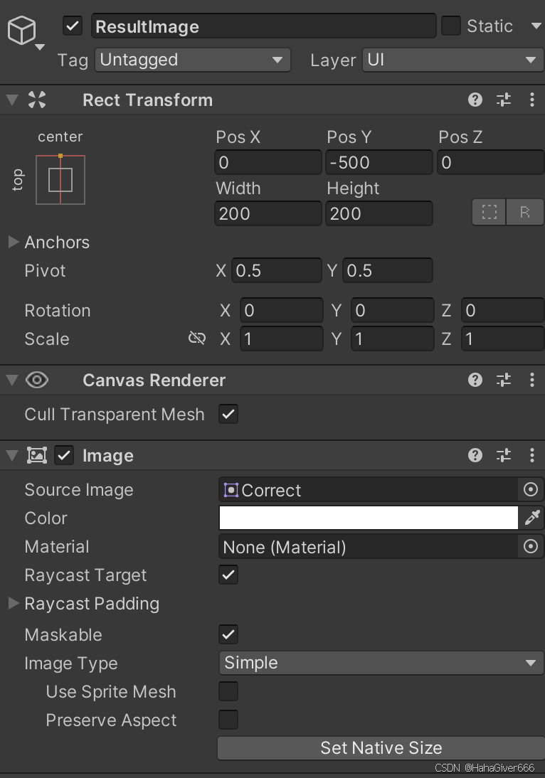 ResultImage设置锚点为UI界面的顶部,并设置好对应的距离。