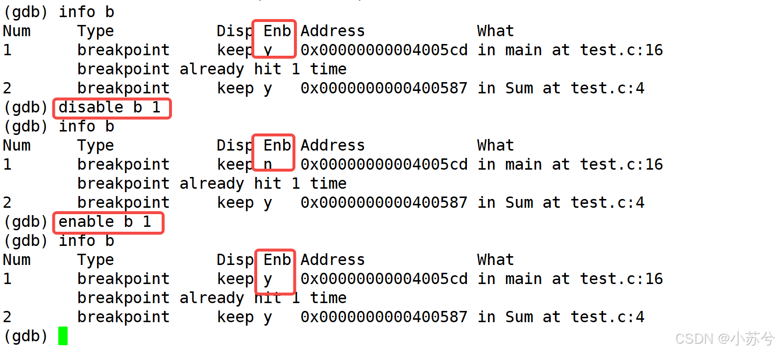 disable breakpoints n与disable breakpoints与enable breakpoints禁用与恢复断点