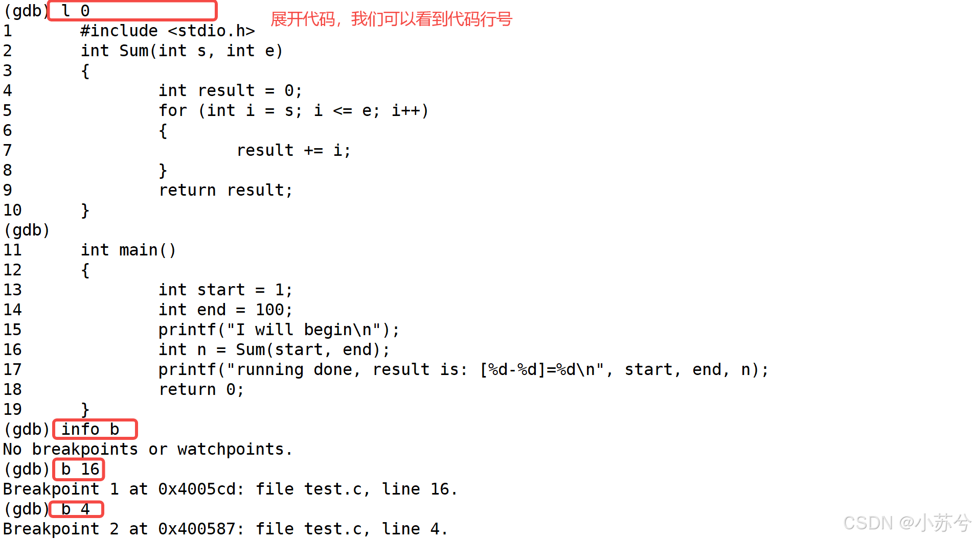 break/b 函数名与break/b [文件名:]行号在函数开头或者指定位置设置断点 。