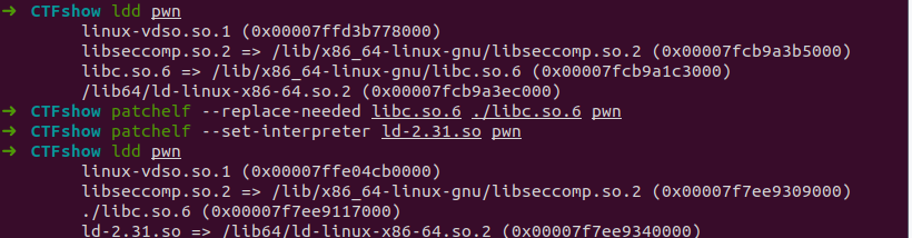 给了 libc 、ld 和 elf 文件,先 patchelf