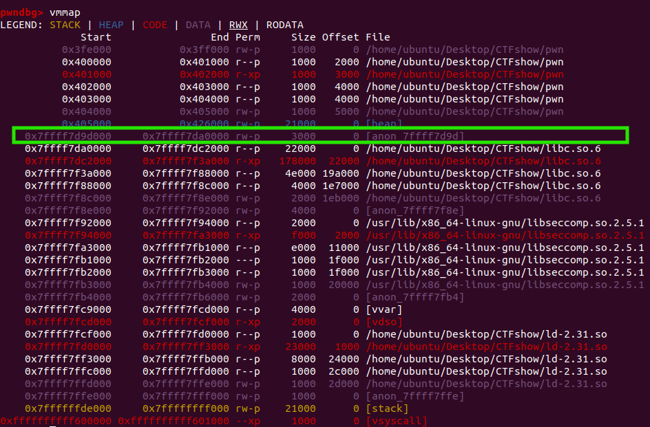 libc 上面这片正好合适,为了防止栈增减,取中间位置rw_mem = libc.address - 0x1000