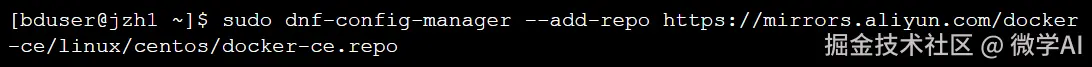 这些工具包有助于管理 dnf 仓库以及为 Docker 提供存储驱动所需的支持 。 接着,添加 Docker 的软件仓库配置文件。 终端操作代码: