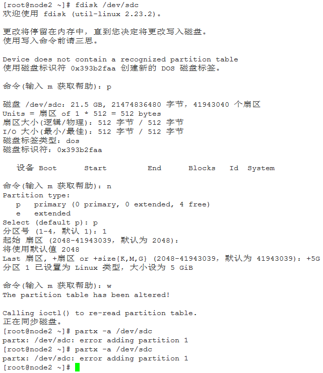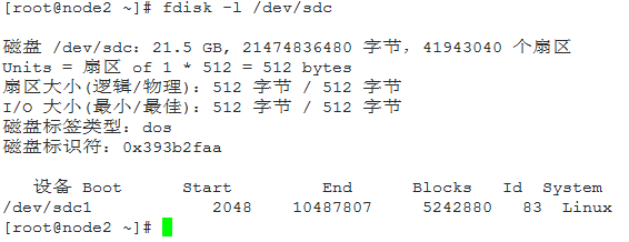 磁盘 /dev/sdc:21.5 GB, 21474836480 字节,41943040 个扇区
