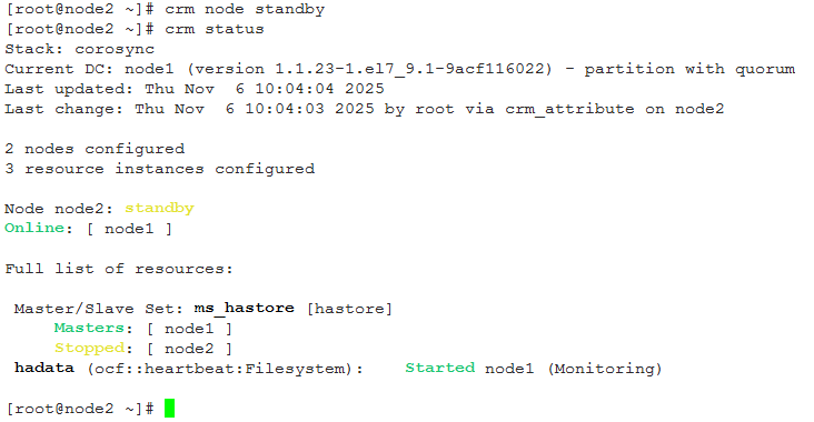 将node2转为旁路,即standby: