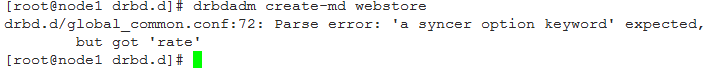 应该是global_common.conf中的syncer配置出问题了,当前的drbd不认这种配置。