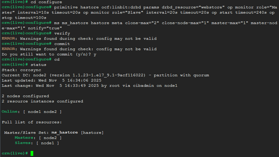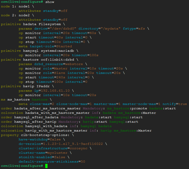 crm(live)configure# ms ms_hastore hastore meta clone-max="2" clone-node-max="1" master-max="1" master-node-max="1" notify="true"