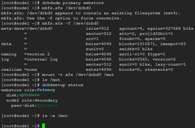 mkfs.xfs /dev/drbd0